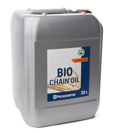 Husqvarna X-GUARD Bio är en vegetabilisk kedjeolja med premium-kvalitet, baserad på förnybara råvaror. X-GUARD Bio är en året-runt olja med förstklassig smörjning och fästförmåga. Tack vare fästförmågan kan oljekonsumtionen minskas utan risk för ökat slitage. Den ger också minimala mängder rester på maskinen. X-GUARD har ett extremt högt viskositetsindex, vilket innebär att viskositeten varierar mindre med temperaturen och kedjeoljan fungerar utmärkt även under kalla förhållanden. X-GUARD Bio oxiderar inte vilket ger mycket god lagringsstabilitet. Produkten är biologiskt nedbrytbar i mark och vatten, giftfri för människor och miljö. EU Ecolabel-certifiering gör det enkelt att veta att produkten är både miljövänlig och har god kvalitet.