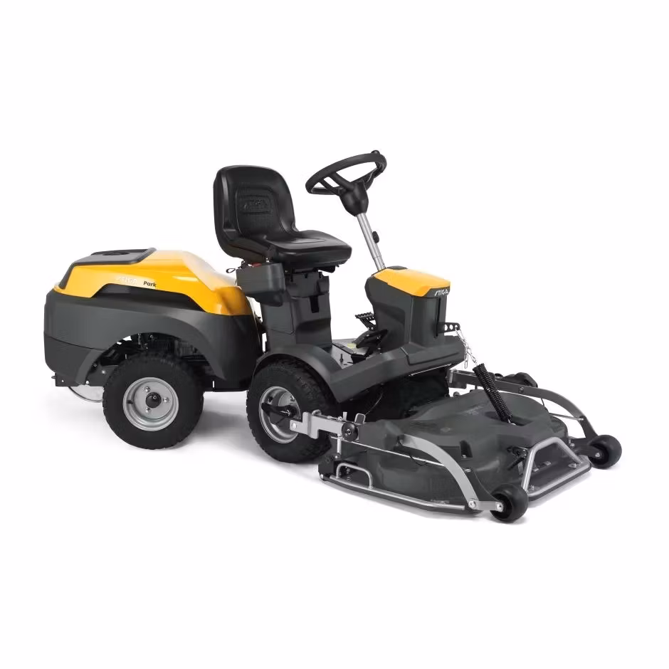 Åkgräsklipparen Park 500 drivs av en STIGA ST 450 encylindrig motor på 432 cc som ger dig pålitlig, bekväm och behaglig gräsklippning. Med servoassisterad midjestyrning (50/50) och innovativ chassidesign blir styrning och manövrering enkel runt hinder och i komplicerade trädgårdar. Dess frontmonterade klippaggregat (ingår ej) ger dig en tydlig sikt framåt, smidig åtkomst till hörn och ett precist klippresultat och tack vare Qucik Flip-tekniken kan du enkelt lyfta klippaggregatet för att kunna rengöra utan krångel. En kompakt instrumentpanel på sidan med funktioner som exempelvis den elektroniska klipphöjdsinställningen och åkgräsklipparens sits har stöd för ländryggen och runtom rymlig yta för benen. Luta dig bara tillbaka, koppla av och njut av resan.